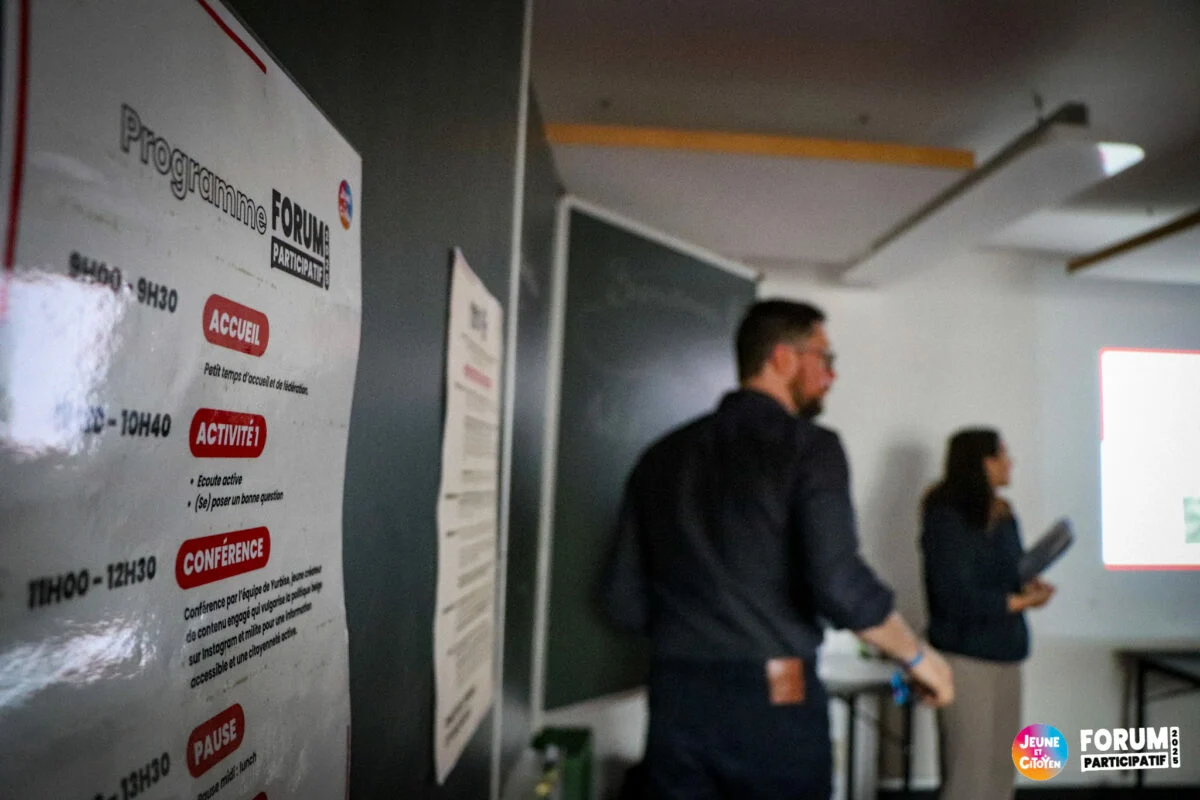 Oui, des photos et vidéos peuvent être prises pendant le Forum Participatif. Elles servent exclusivement à des fins de communication institutionnelle de l’ASBL Jeune Et Citoyen (site web, réseaux sociaux, rapports d’activité, etc.).